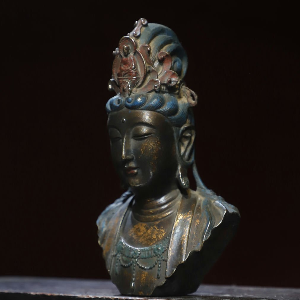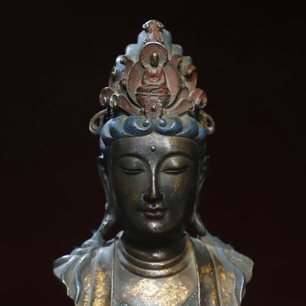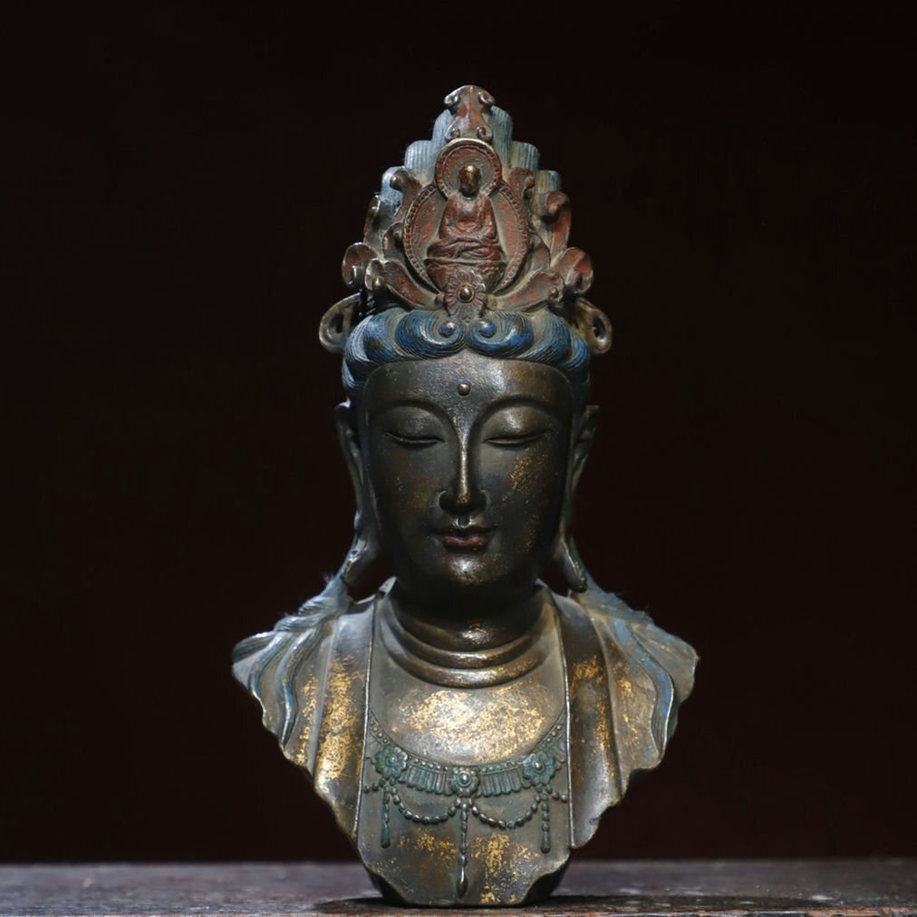 ■観心・時代?旧蔵■T2208清?時代? 銅塗金 観音仏首 細工彫刻★仏教古美術★仏像★細密細工★廃寺旧蔵★廃寺買出品 店铺出品者
