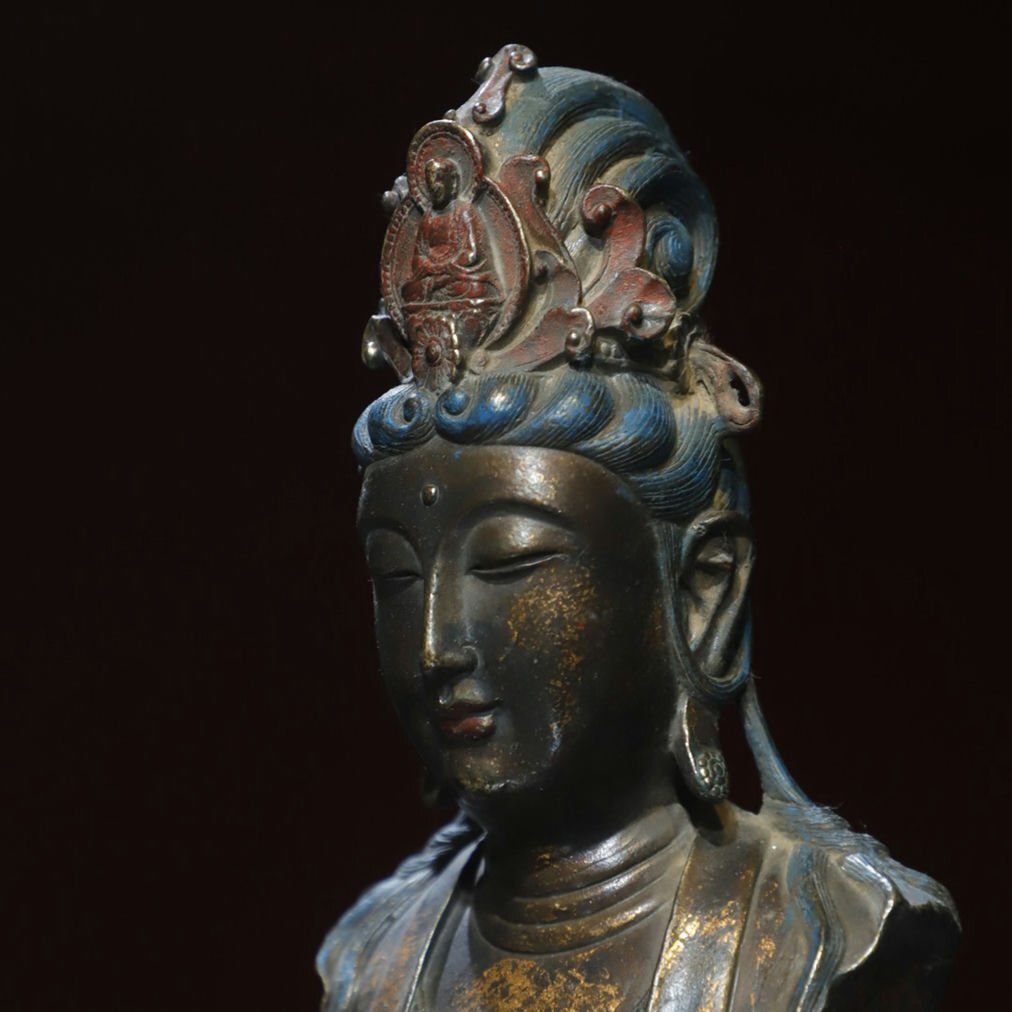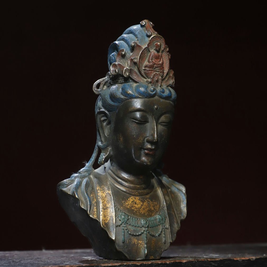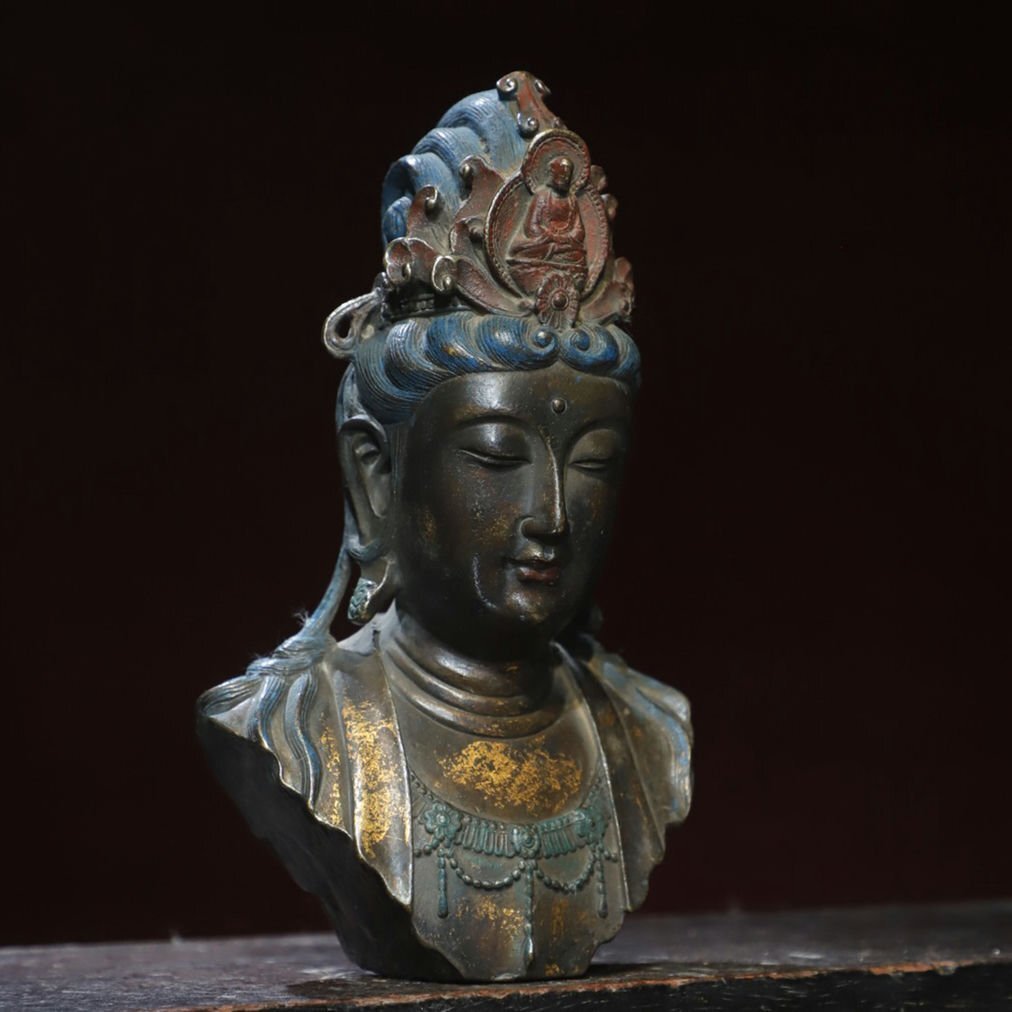 ■観心・時代?旧蔵■T2208清?時代? 銅塗金 観音仏首 細工彫刻★仏教古美術★仏像★細密細工★廃寺旧蔵★廃寺買出品 店铺出品者