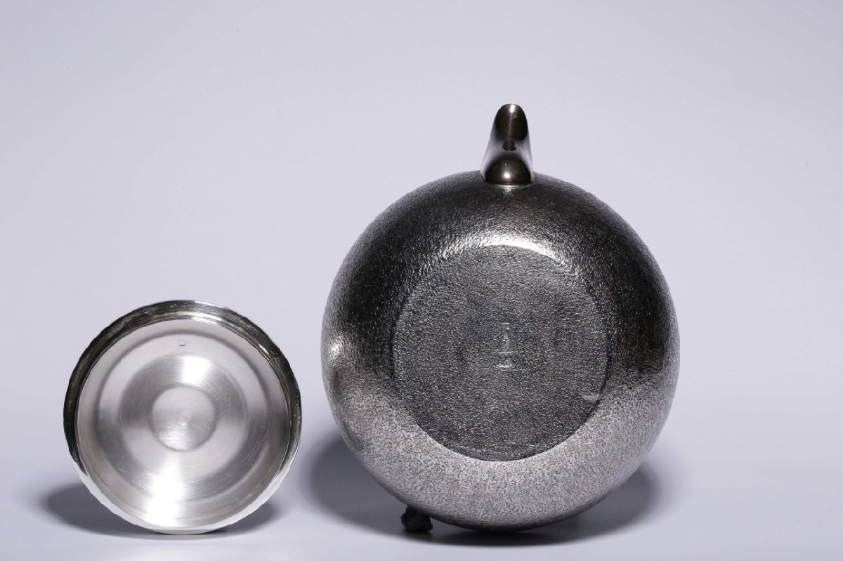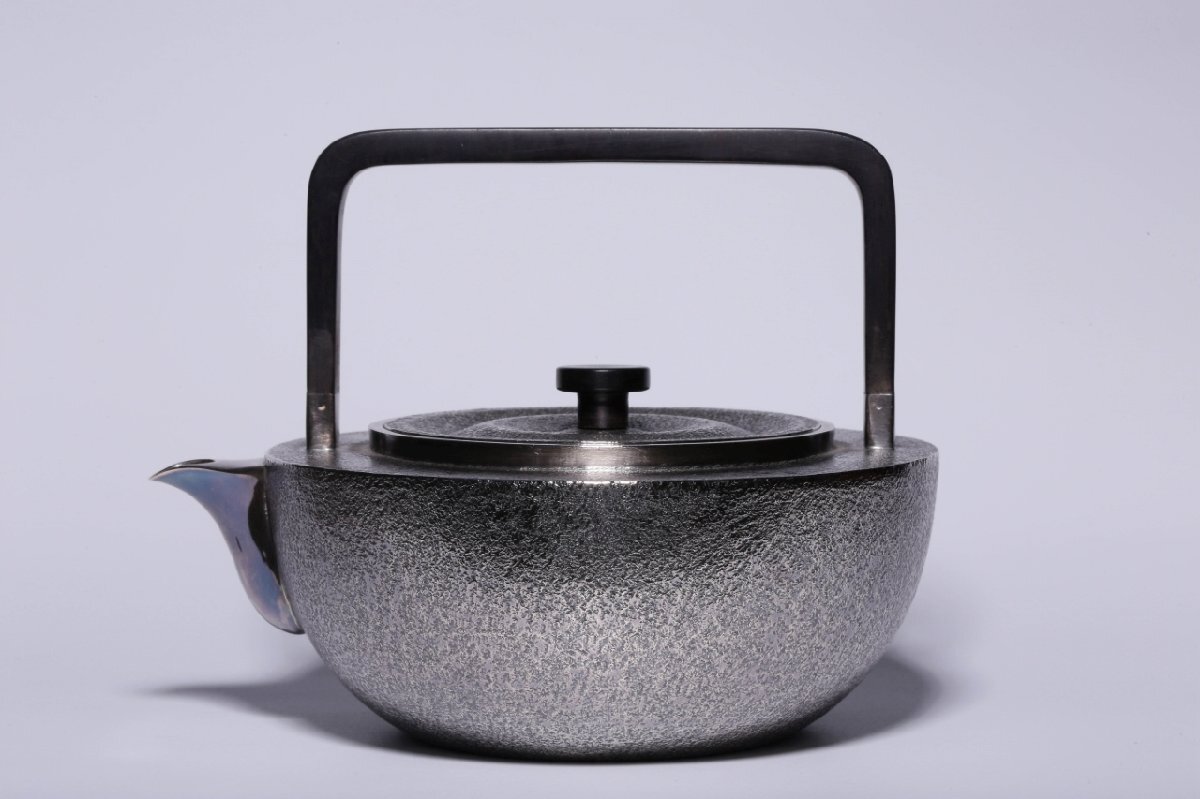 【安】銀瓶 足銀刻印 純銀製 湯沸 錘目紋提梁茶壺 煎茶道具 極細工 茶壷 急須 茶器 時代?物 古董品 340 店铺出品者