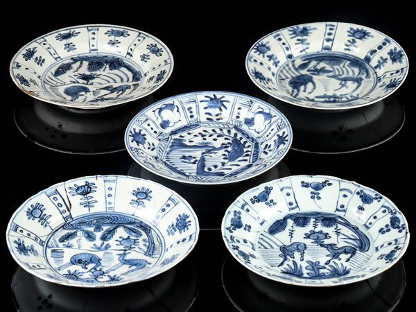 【流】中国美術 古染付皿五客 幅21cm TW706 店铺出品者